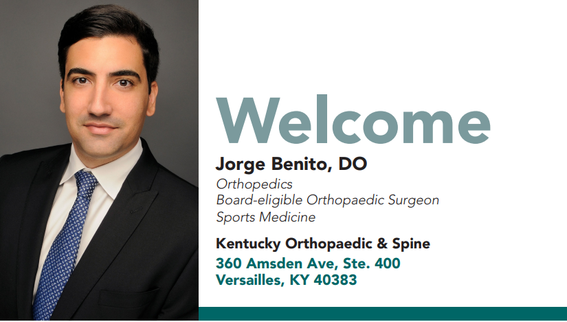 VERSAILLES, Ky. (October 30, 2025) – Bluegrass Community Hospital is pleased to welcome Jorge Benito, DO, Orthopaedic Surgeon, to the medical staff in. Dr. Benito has joined the Versailles location of Kentucky Orthopaedic & Spine to bring sports medicine and general orthopaedic care to Woodford, Anderson and Franklin Counties.
